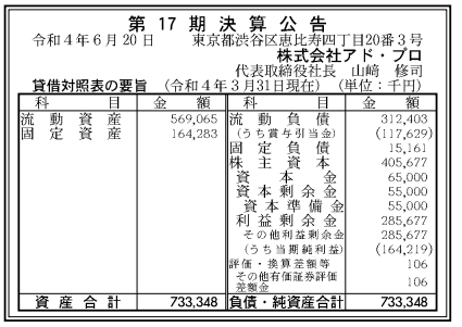 アド・プロ 22年3月期(17期)
