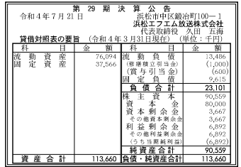 浜松エフエム放送 22年3月期(29期)