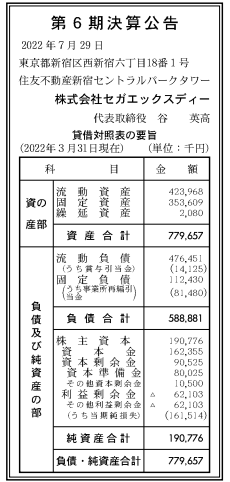 セガXD 22年3月期(6期)