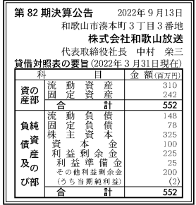 和歌山放送、2022年3月期(82期)